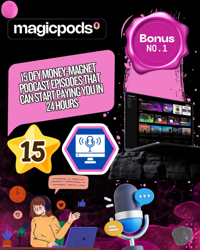 That’s why I’ve built you an unfair advantage — a hand-picked, ultra-valuable collection of done-for-you tools, contacts, and income accelerators that make monetizing your MagicPods AI podcasts almost inevitable.