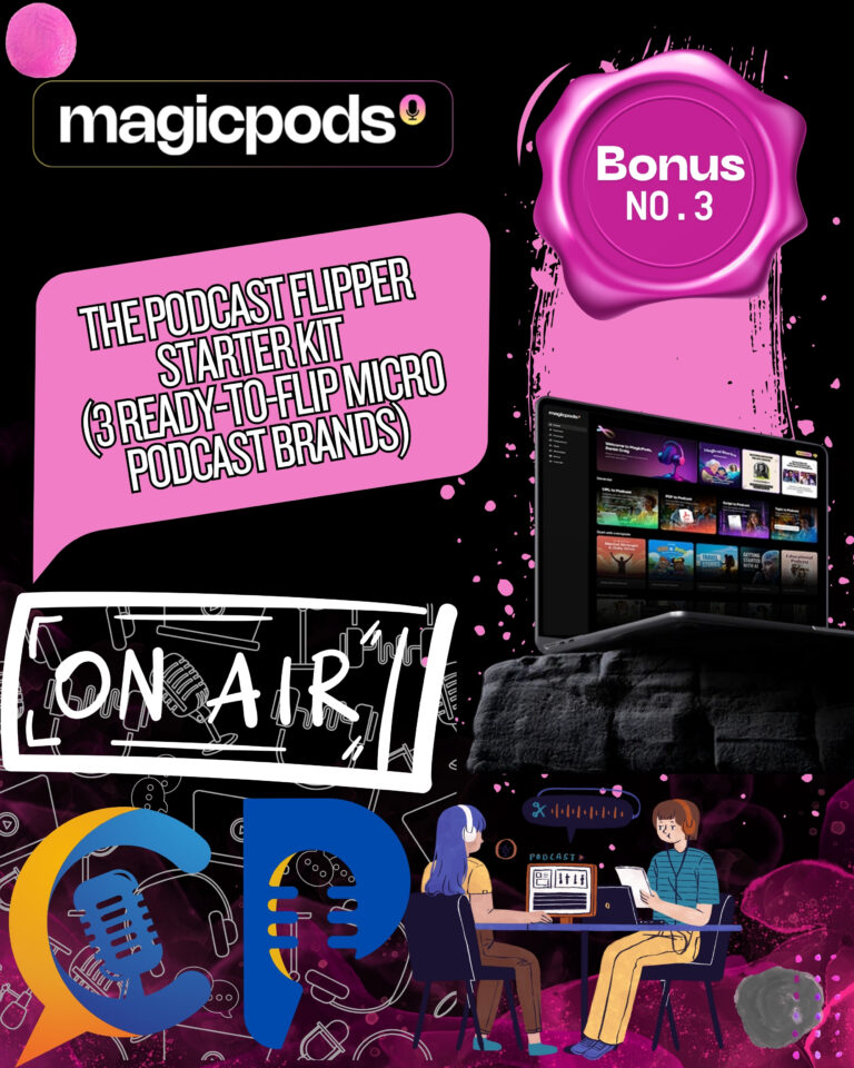 Pair them with the DFY scripts from Bonus #1, run them through MagicPods AI, and you’ve got fully branded podcast properties you can sell on Flippa, Empire Flippers, or directly to companies in that niche.