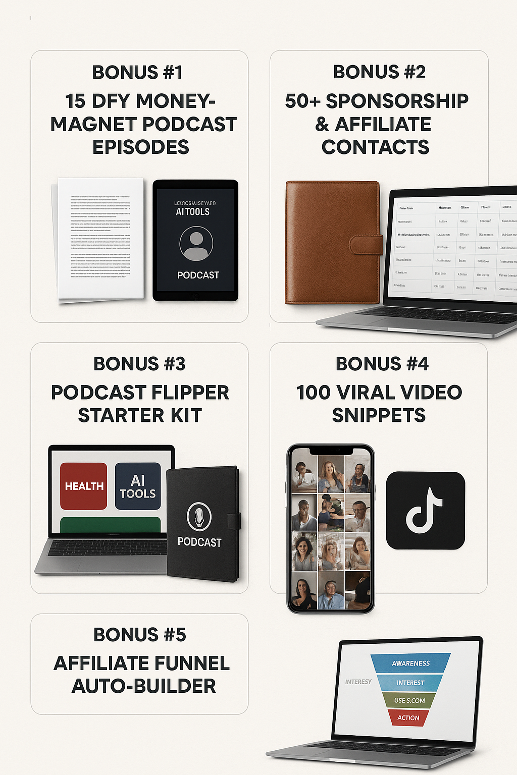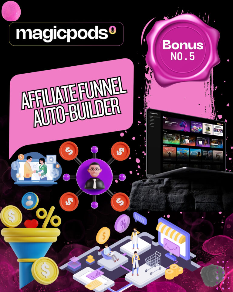 This bonus solves that forever. The Affiliate Funnel Auto-Builder creates high-converting opt-in funnels in minutes, so you can capture every interested listener and send them directly into an affiliate offer sequence.
